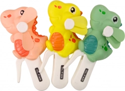 Roztomilý ruční mini větráček ve tvaru dinosaura přináší dětem zábavu i svěží vánek v horkých dnech. Ovládá se jednoduchým stiskem páčky, je bezpečný pro děti, vyrobený z odolného plastu a díky kompaktním rozměrům 16 × 8 × 6 cm se snadno přenáší. Dostupný ve třech barvách – žluté, růžové a zelené. Vhodné od 3 let, splňuje CE a EN71.