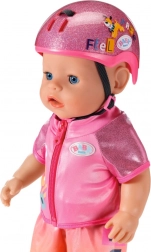 Bezpečí při každé jízdě! Stylová cyklistická helma pro panenky BABY born ve velikosti 43 cm kombinuje jasně růžový třpytivý design s větracími otvory a nastavitelným páskem pro pohodlné a bezpečné hraní na kole, odrážedle i koloběžce.