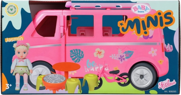 Objevte kompaktní svět cestování s kempovacím autem BABY BORN MINIS a roztomilou panenkou Jasmin. Světle růžový obytný vůz se skládací konstrukcí ukrývá kuchyňku, velkou postel i koupelnu, a navíc přichází s bohatým příslušenstvím – stolečkem, třemi židličkami, kolem a grilem. Vše snadno uložíte dovnitř, takže je připraveno k dalšímu dobrodružství.