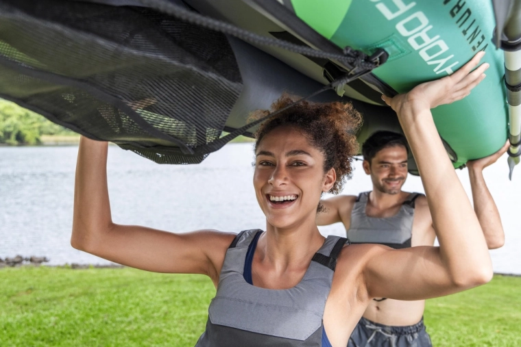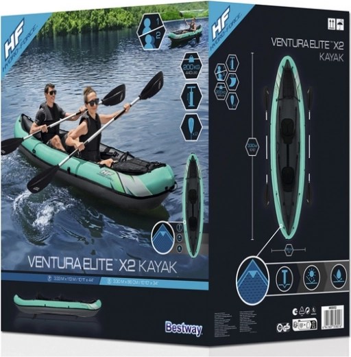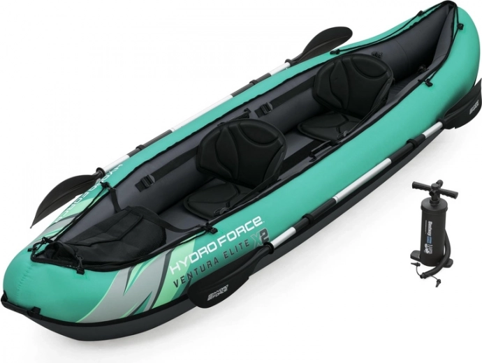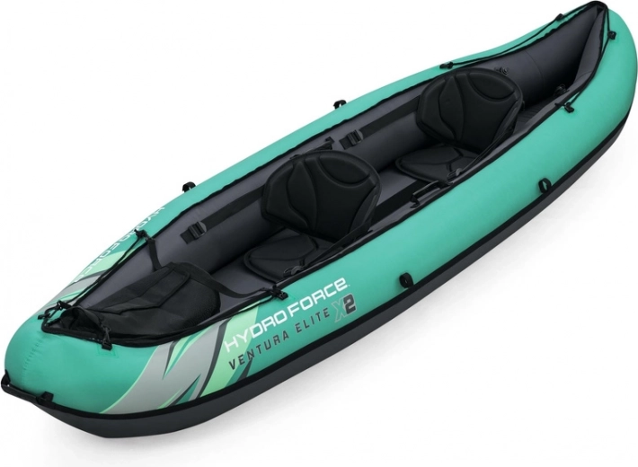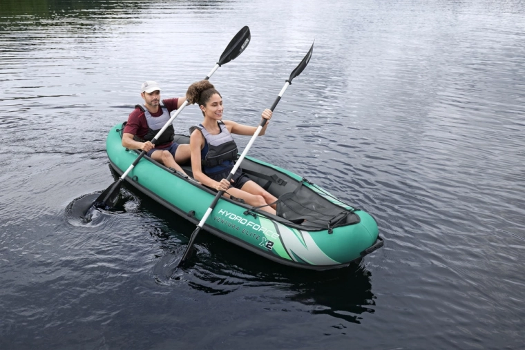 Odolný a stabilní nafukovací kajak pro dvě osoby HYDRO-FORCE Ventura Elite X2 je ideální na klidné jezera i pomalu tekoucí řeky. Nabízí pevný nylonový plášť odolný vůči slunci, oleji i mořské vodě, dvě pohodlná polstrovaná sedadla s úložnými kapsami a skvělé vedení směru díky dvěma výměnným ploutvím. V balení najdete pár hliníkových pádel, ručnou pumpu, transportní tašku i příslušenství pro rychlou akci na vodě.