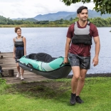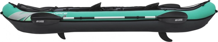 Pro přesné vedení směru jsou k dispozici dvě vyměnitelné ploutve, boční úchyty a lana usnadní manipulaci a přenášení. Kompletní sada s ruční pumpou, dvěma 230cm hliníkovými pádly, odnímatelnou taškou na výbavu a transportní taškou vám umožní vyrazit na vodu během pár minut.