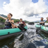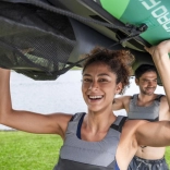 Dvě vyměnitelné ploutve pro přesné vedení směru, hliníková pádla 230 cm a ruční pumpa v balení. Snadné nafouknutí, přenášení i skladování.