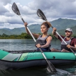 Ventura Elite X2 je robustní nafukovací kajak navržený pro rekreační pádlování ve dvou. Díky kvalitní kombinaci nylonu a PVC je odolný proti oděru, UV záření i slané vodě, zatímco vyjímatelné boční komory a tuhá I-beam podlaha zajišťují výbornou stabilitu a jistotu na vodě. Nastavitelná pěnová sedadla s opěrkou zad a kapsou zvyšují komfort i na delších výletech.