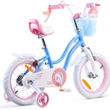 Stylové dětské kolo RoyalBaby Star Girl s velikostí kol 14″ je ideální pro první jízdy. Nabízí stabilitu díky bočním kolečkům, bezpečné ruční brzdy, plný kryt řetězu a pohodlné sedlo s držadlem. Součástí je přední košík, zvoněk a barevné stuhy na řídítkách – vše pro radostné a bezpečné učení jízdy.