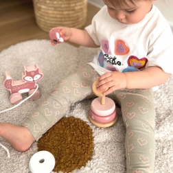 Přírodní dřevěné provedení s hladkými hranami a uklidňujícími růžovými odstíny je příjemné do ruky a láká ke každodennímu hraní.
