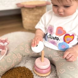 Díky hladkému dřevu a příjemným pastelovým tónům se hračka hodí do každého dětského pokoje. Děti si rozvíjejí jemnou i hrubou motoriku, trpělivost a logické myšlení, zatímco si užívají bezpečné a kreativní hraní.