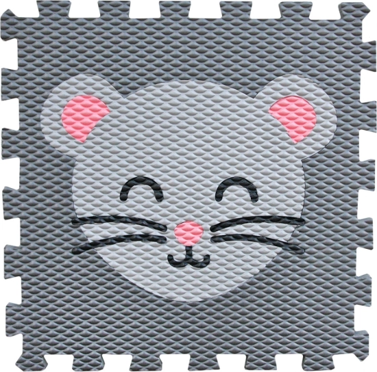 Roztomilý dětský kobereček Minideckfloor s motivem myšky v šedých tónech zútulní každý pokojíček. Nabízí jemný povrch, příjemné tlumení kroků a snadnou údržbu, takže je ideální pro hraní i odpočinek.