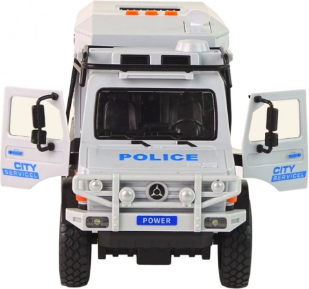 Pojízdné terénní vozidlo městské služby je vyrobeno v měřítku 1:14, což z něj činí nesmírně detailní model. Je vybaveno pohonem pull-back – jednoduše jej zatáhněte zpět a pusťte, aby se rozjelo dopředu plnou rychlostí.