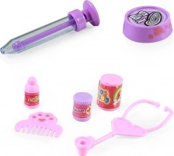 Dále sada obsahuje potřebné vybavení pro hraní si na veterináře – hřebínek, misku na žrádlo, injekci a další nástroje. Všechny doplňky jsou designovány s ohledem na bezpečnost a zábavu.