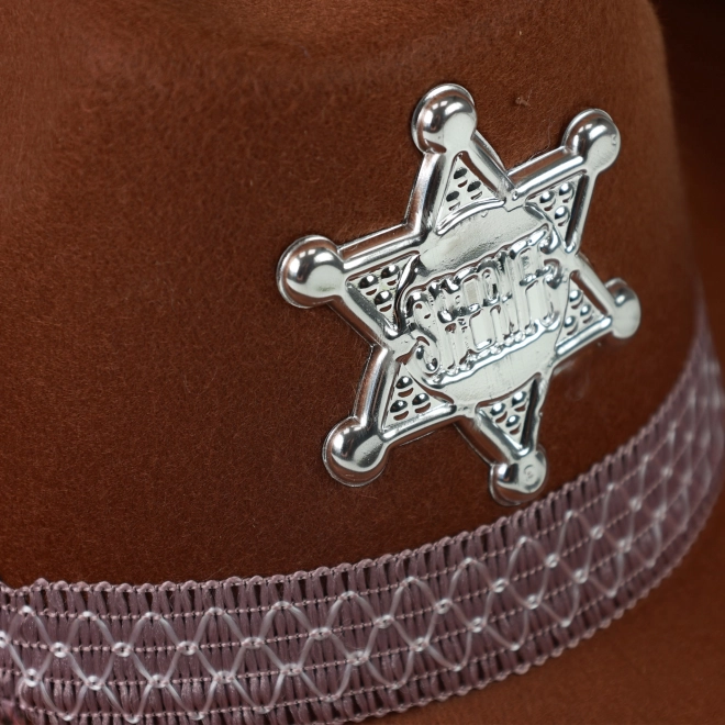 Proměňte malého kovboje v šerifa během chvilky. Hnědý klobouk se stylovou stuhou a lesklou šerifskou hvězdou pevně drží díky gumičce, takže skvěle sedí i při akční hře.