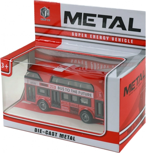 Stylový model legendárního londýnského double deckeru v červené barvě potěší malé i velké sběratele. Kovové provedení, volně otočná kola a zpětný chod pro zábavnou jízdu. Kompaktní délka cca 9,5 cm a detailní zpracování dělají z tohoto modelu skvělý dárek i sběratelský kousek.