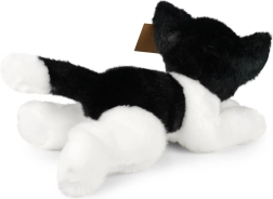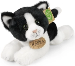 Tato bílo‑černá ležící kočička z exkluzivní kolekce RAPPA nadchne precizním ručním zpracováním a heboučkým materiálem, který láká k mazlení. Díky promyšleným detailům a výrazným zeleným očím působí jako živá.