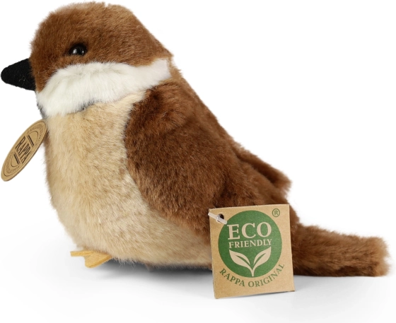 Tento plyšový vrabec je součástí exkluzivní kolekce od RAPPA, zaměřené na ekologicky šetrné výrobky. Hračka je vyrobena z vysoce kvalitní, jemné plyše a je vyplněna materiálem z recyklovaných PET lahví. Tímto podporuje udržitelnou spotřebu a přispívá k ochraně přírody.