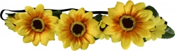 Tato čelenka je zdobena třemi velkými žlutými květy, které upoutají pozornost a dodají Vašemu vzhledu svěžest a originalitu. Čelenka je pohodlná díky gumovému uchycení, které zajišťuje bezpečné a komfortní nošení po celý den.