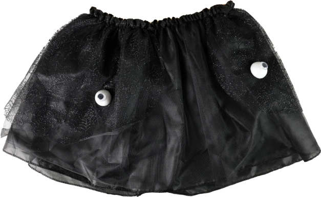 Kostým zahrnuje černou tutu sukni zdobenou pavučinovým motivem, který dodává autentický vzhled a skvěle se hodí pro tematické večírky.