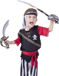 Skvěle sedí dětem ve věku 6–8 let (117–128 cm) a podpoří kreativní hraní rolí i sebevědomí malého piráta.