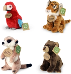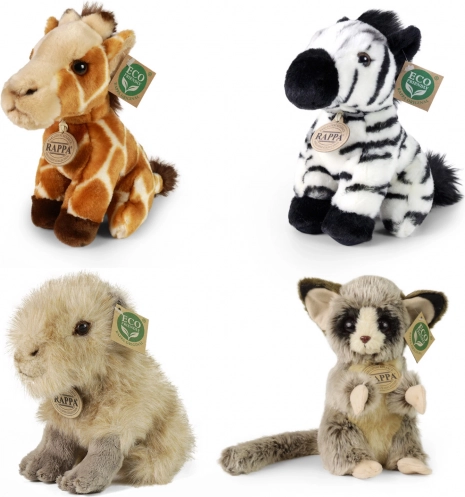 Ucelený prodejní displej s výběrem plyšových exotických zvířat od značky RAPPA. Každý plyšák má výplň z recyklovaných PET lahví, takže je nejen měkký a hebký, ale i šetrný k přírodě. Displej z odolného vrstveného papíru je ideální pro obchody i dárkové koutky a přitáhne pozornost díky realistickému zpracování a eco označení.