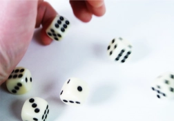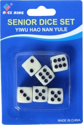 - Každá kostka má standardní velikost a dobře čitelné černé tečky.
