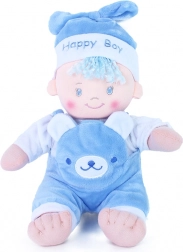 Obleček s medvídkem a čepička s nápisem „Happy Boy“ dodávají panence přátelský výraz, který děti milují.