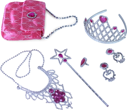 Rozzářete dětskou fantazii s kouzelnou princeznovskou sadou, která promění každou holčičku v opravdovou princeznu. Součástí balení je korunka, náušnice, náhrdelník, kouzelná hůlka a kabelka v krásné růžové barvě – ideální pro převleky, karneval i hry doma.