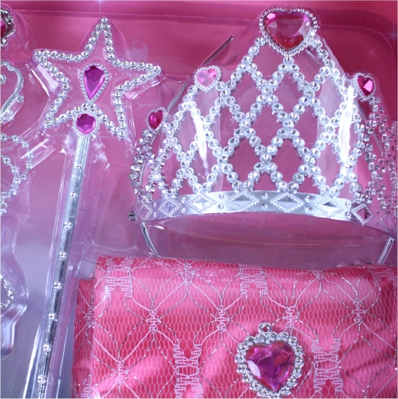 Obsah balení: korunka, náušnice, náhrdelník, kouzelná hůlka, kabelka.