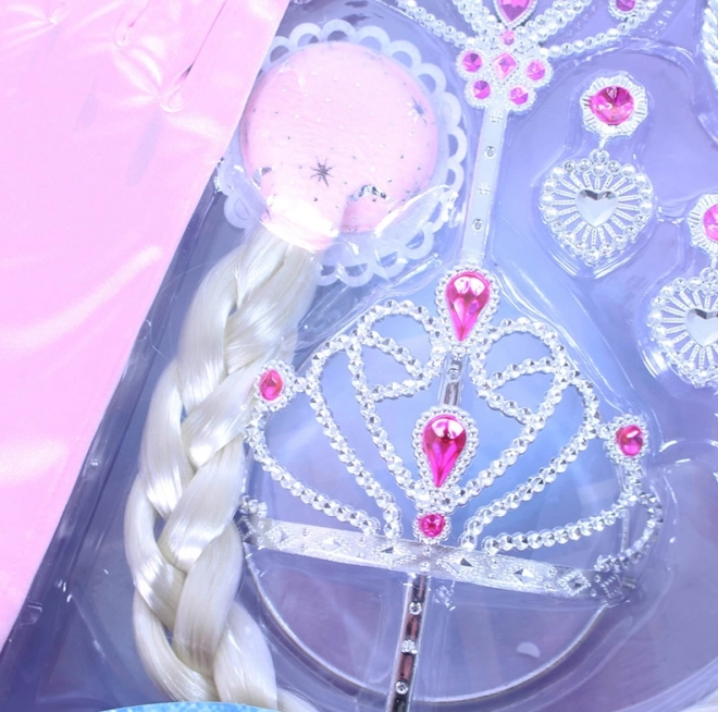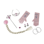 Exkluzivní dětská sada pro malé princezny obsahuje korunku, náušnice, prstýnky, kouzelnou hůlku, náramky a rukavice, doplněné o dlouhý blond cop. Ideální ke kostýmu, na karneval i na hraní doma. Doporučeno pro děvčata od 3 let.