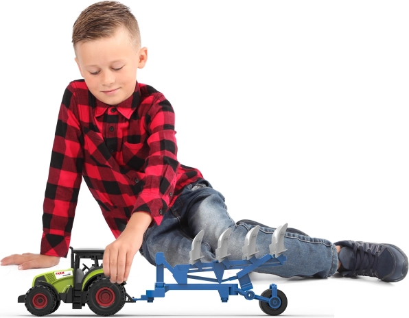 Jízdu zajišťuje setrvačník, takže se traktor snadno rozjede lehkým postrčením. Celková délka soupravy je 37 cm, což zaručuje stabilitu a pohodlné ovládání malýma dětskýma rukama. Baterie jsou v balení, takže si děti mohou začít hrát hned po rozbalení.