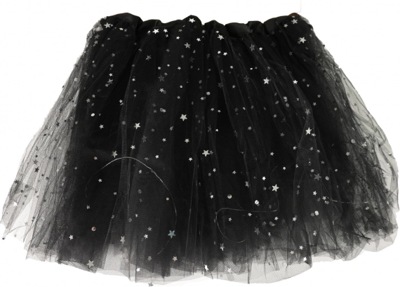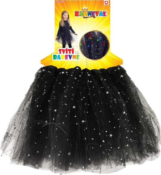 Okouzlete malou parádnici nádhernou tutu sukní v černé barvě se zabudovanými světýlky! Nadýchaný tyl, saténová guma v pase a třpytivé flitry zajistí, že bude zářit při každé příležitosti. LED světýlka po zapnutí svítí a baterie jsou součástí balení.