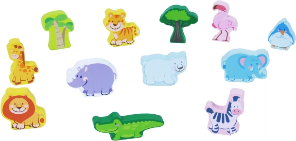 - 12 ks dřevěných figurek zvířat a rostlin ze zoo