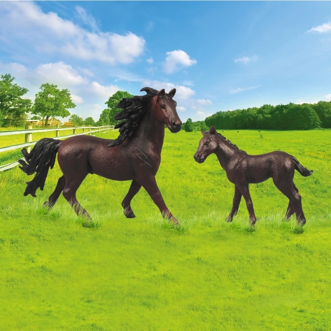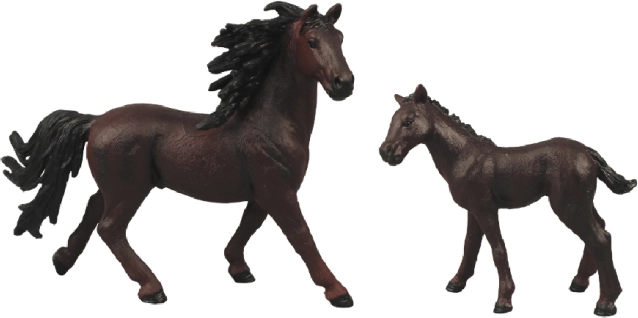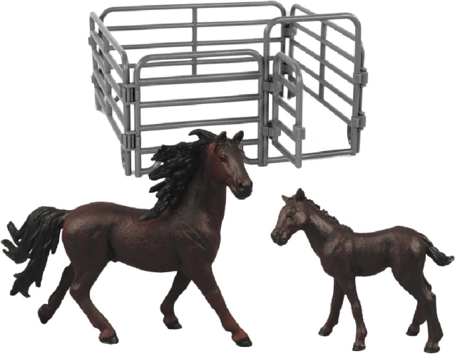 Obohaťte vaši sbírku hraček touto krásnou sadou koní s ohradou. Figurka koně a hříběte působí realisticky a svým zpracováním těší všechny věkové kategorie. Balení obsahuje: