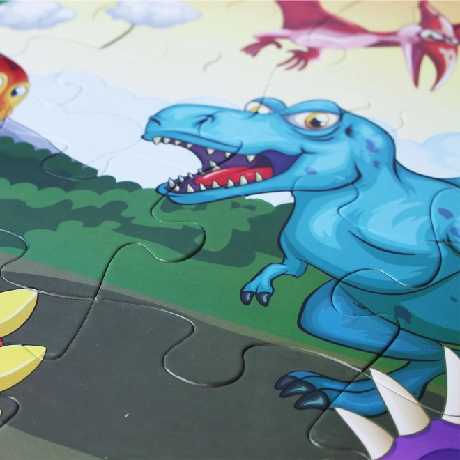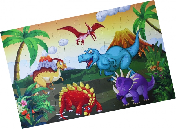 Podlahové puzzle s motivem dinosaurů pro děti od 3 let, obsahuje 48 velkých dílků pro snadné složení. Výsledný obrázek má velikost 92 x 62 cm.