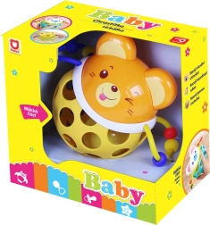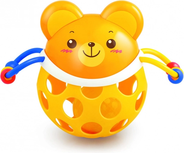 Roztomilý medvěd chrastítko. Barevné chrastítko s kuličkou uvnitř, spodní díl chrastítka je vyroben z měkkého materiálu, dále jsou na chrastítku kroužky. Navíc má úchyty pro pohodlné držení. Rozvíjí smyslové vnímání dítěte a podněcuje jeho fantazii.