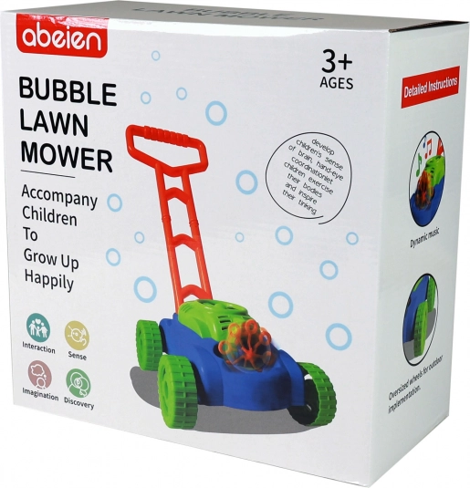 Dětská sekačka na bubliny je navržena tak, aby děti zažily zábavu a pohyb při hraní na zahradě. Stačí nalít bublifuk do speciálního místa a postavit sekačku do pohybu - milióny malých bublinek se rozletí do všech stran. Pro ještě větší zážitky sekačka vydává zvuky a hraje hudbu, pokud ji napájíte třemi AA bateriemi (nejsou součástí balení), nebo lze použít bez baterií s mechanickým zvukem.