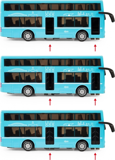 Manuálně otevíratelné dveře umožňují dětem simulovat nastupování a vystupování, což přidává další rozměr do hry.
