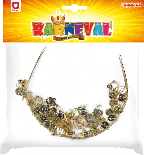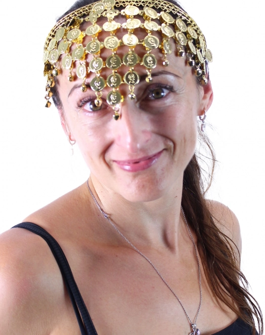 Tato stylová orientální čelenka je navržena tak, aby zvýraznila vaši tvář a dodala kostýmu výrazný, ale vkusný efekt. Zlaté penízky se při tanci jemně rozechvívají a vytvářejí atraktivní zvuk i třpyt.