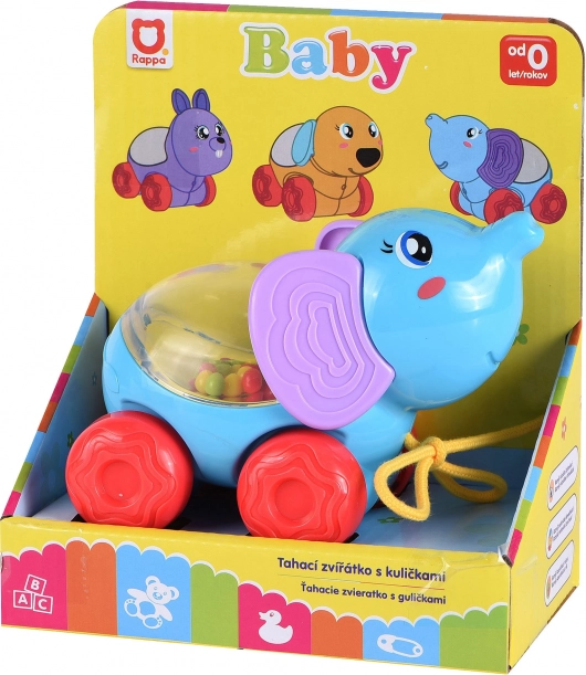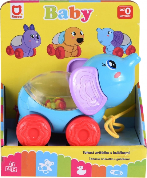Tahací slon s kuličkami je hravé zvířátko na kolečkách, které zabaví děti při prvních krůčcích i společných hrách. Při tahání nebo posouvání se uvnitř průhledné části rozskakují barevné kuličky, což děti přirozeně motivuje k pohybu a objevování.