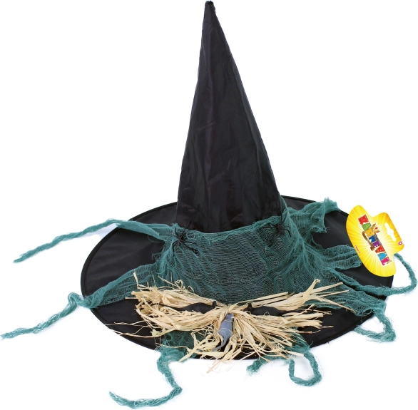 Doplňte svůj kostým o stylový čarodějnický klobouk, který nejenže vypadá skvěle, ale také se perfektně hodí na každou halloweenskou party či tematický večírek. Černá barva a dekorace zelené gázy se zaručeně stanou středem pozornosti. Tento klobouk je vyroben pro dospělé a skvěle padne na většinu velikostí hlav. Vhodné pro osoby starší 14 let.