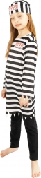 Dopřejte malé parádnici originální převlek na každou maškarní párty. Tento dětský kostým vězeňkyně v klasickém bílo‑černém proužku sedí dětem s výškou 105–116 cm a nabízí pohodlné nošení díky měkkému textilu. Set obsahuje dlouhé triko a čepici s číslem 9999, které dotvoří autentický vzhled.
