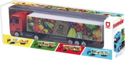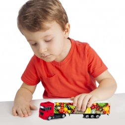 Parádní kamion do tvé sbírky autíček! Tento model v měřítku 1:87 je vyroben z kovu, má PVC přívěs a jezdí na volný chod. Délka cca 20 cm potěší malé i velké řidiče. Odolný kovový model, volnoběh pro plynulou jízdu a atraktivní design s motivem ovoce a zeleniny z něj dělají skvělou hračku i dekoraci do dětského pokoje.