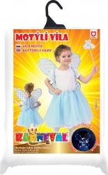 Objevte kouzelný svět víl s nádherným kostýmem Modřenka! Tento kostým zahrnuje modrou tylovou TUTU sukni se saténovou spodničkou a svítící křídla s efektními světýlky.