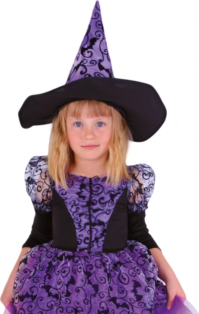 Tento fialovo-černý kostým čarodějnice je skvělou volbou pro všechny holčičky, které chtějí na Halloween nebo kostýmové akce vypadat kouzelně. Šaty mají pohodlnou, ale elegantní nadýchanou sukni a originální netopýří vzor, který zaujme každého.