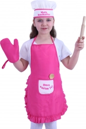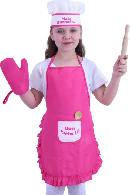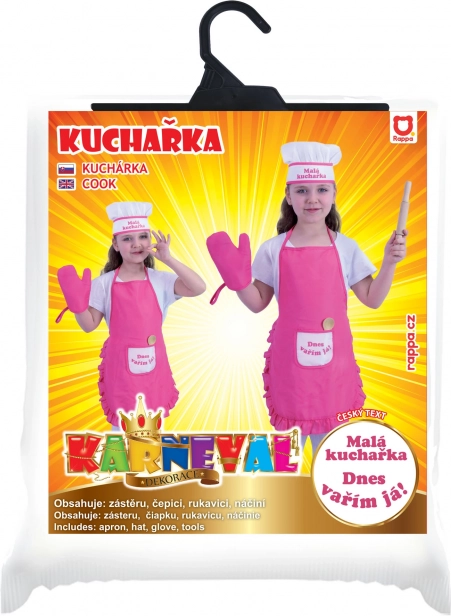 Ideální kostým pro každou malou kuchařku! Tento růžový kostým zahrnuje zástěru, kuchařskou čepici, chňapku a dřevěné náčiní – vše, co potřebuje pro zábavné hraní.