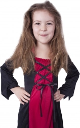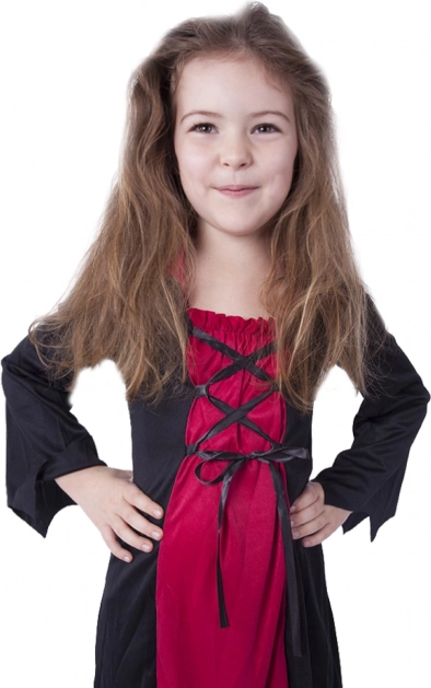 Klasické černo‑červené šaty se šněrováním na přední straně a rozšířenými rukávy vytvářejí působivý čarodějnický vzhled na každou tematickou párty. Kostým je skvělou volbou pro Halloween, karneval i školní besídky a díky univerzální velikosti S padne většině dětí ve věku 4–6 let.