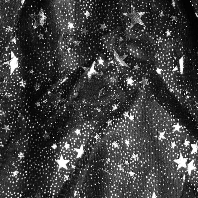 Třpytivý tyl se stříbrnými hvězdičkami