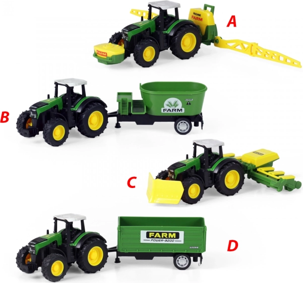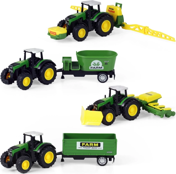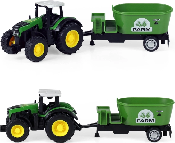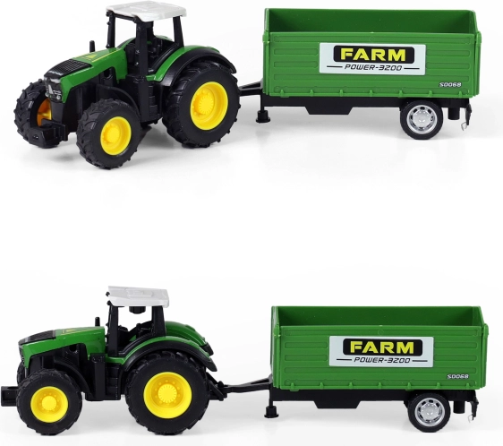 Objevte kouzlo farmaření s tímto moderním traktorem a jeho odpojitelnou vlečkou. Jednoduše odpojitelná vlečka vám umožní flexibilitu pro různé činnosti na farmě. Traktor je vybaven jízdou na zpětný setrvačník a měří cca 18 cm i s vlečkou. Vyberte si z 4 různých modelů, které zaujmou svým propracovaným designem a realistickými detaily.