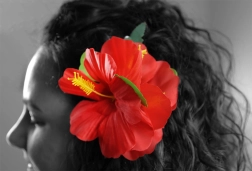 Květ hibiscus vyrobený z textilu v kombinaci s plastem působí velmi realisticky a oživí jakýkoli účes.