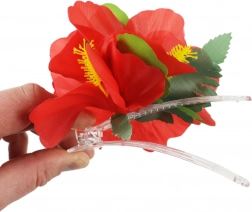 Tato květinová sponka do vlasů přináší exotiku přímo do vašeho stylu. S jejími sytě červenými květy a zelenými lístky se proměníte v královnu každé akce, ať už jde o plážovou párty, Havajský večírek nebo oslavu u bazénu.