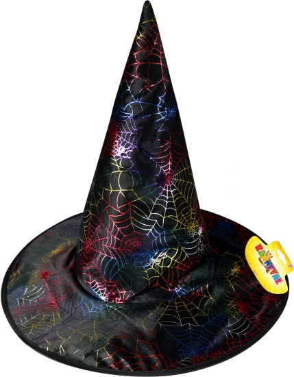 Stylový doplněk, který okamžitě dotvoří váš kostým čarodějnice či mága. Klobouk s výrazným pavučinovým vzorem na černém podkladu upoutá pozornost a díky široké krempě a špičatému tvaru dodá autentický vzhled. Lehký textilní materiál se příjemně nosí po celý večer.