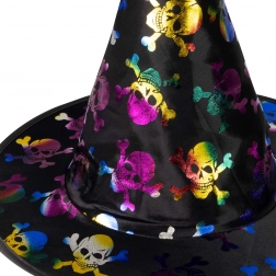 Dětský čarodějnický klobouk s barevnými lebkami