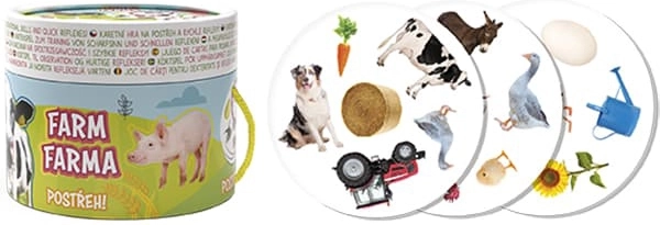 Užijte si svižnou zábavu s tématem FARMA! Tato postřehová karetní hra přináší rychlé kolo za kolem, kde rozhoduje bystré oko a bleskové reakce. Díky 30 barevným kartičkám a jednoduchým pravidlům se do hry zapojíte během chvilky.